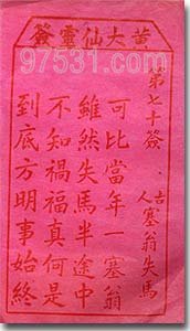 这支签,暗喻事情仍有反覆,坏事可以转化成为好事,而好事亦会转化成坏事,但是,我们只能像当年的塞翁一样,暂且接受现实,不管是祸是福,都要处之泰然,善恶到头,是会有结果的。